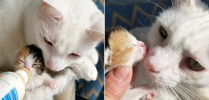 子猫は体重が71gしかありませんでしたが、強い意志を持っていて、生きることを決して諦めていませんでした。また子猫はいつも愛されたいと思っていて、誰かに抱きしめてもらうことを強く望んでいました。エレンさんはそんな子猫にふさわしい猫がいることを知っていました。