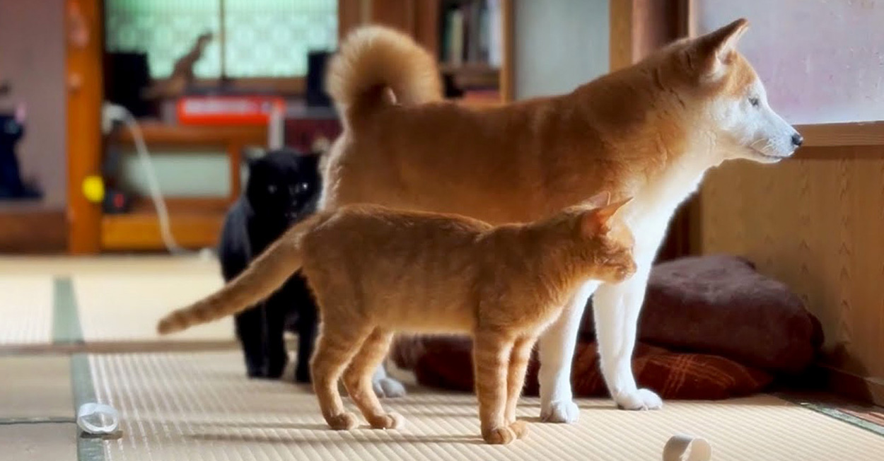 台風で強い雨風が吹きつける中、安全な家の中で過ごしていた柴犬と3匹の猫達。外から聞こえてくる大きな雨の音が気になって、ソワソワが止まらなくなってしまいました。