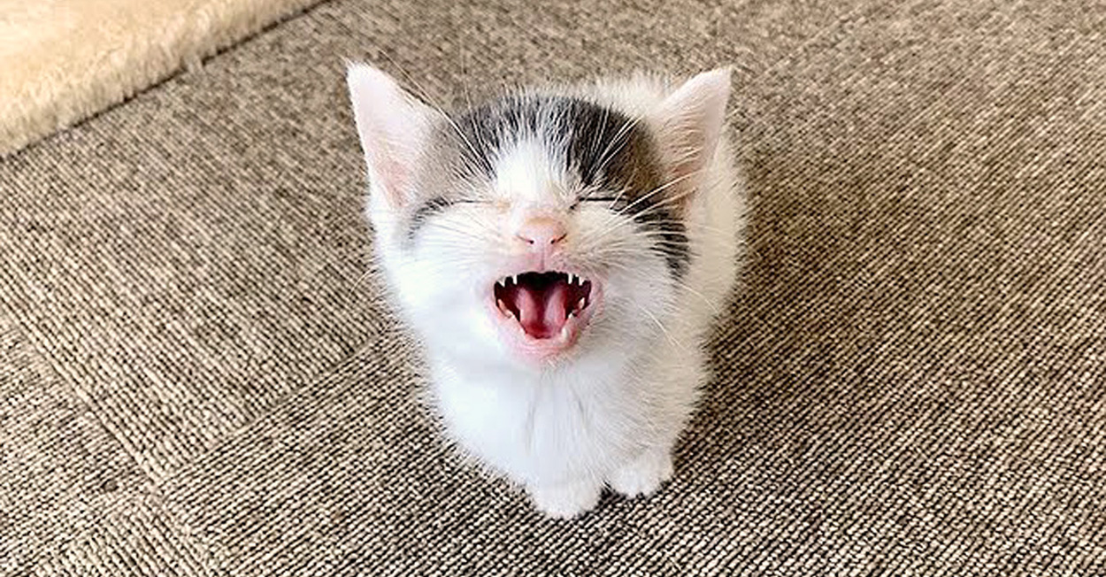 3匹の兄弟と一緒に保護されて、安全で快適な養育主さんの家で過ごし始めた子猫。この日はどうしても養育主さんと一緒に遊びたかったようで、「遊んで!」と言っているかのように大きな声で鳴いてきました。