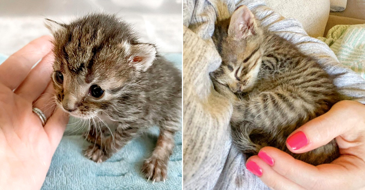 ある日、『クリケット』と名付けられた子猫が野外で独りぼっちになっていたところを発見されました。生後僅か1日だったクリケットは、すぐに地元の保護施設へと運ばれました。「その後、保護施設の獣医さん達が2週間近くカテーテルで栄養を与え続けて、クリケットの命をつなぎました」と養育ボランティアのメリッサ・ルーカスさんが言いました。