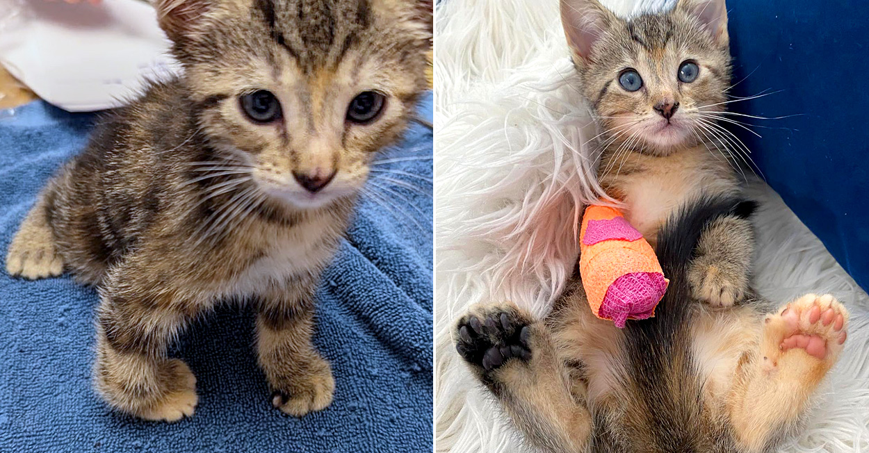 「治療を始めてから10日後、キッカーズの右前足はほぼ真っ直ぐになりました。彼女は包帯を外して肉球で着地できるようになると、すぐに部屋の中を走り回り始めました。彼女は多くの子猫達のように自由に遊べるようになったことにとても興奮していました。」
