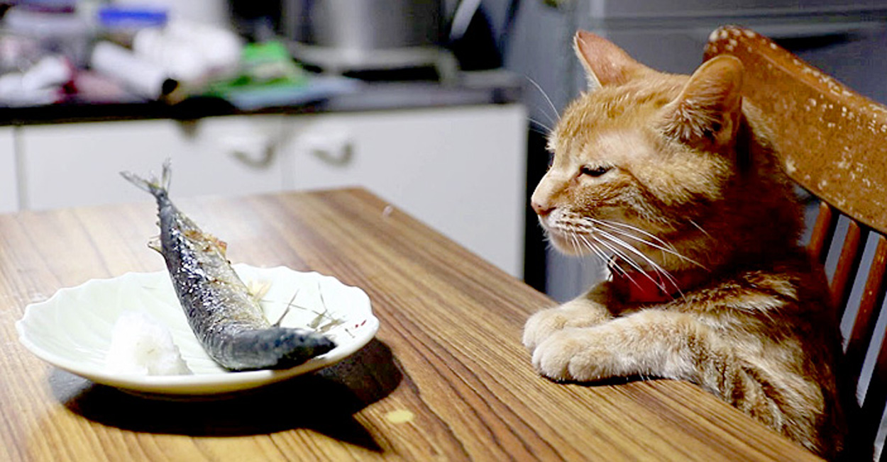 テーブルの上のサンマが気になる猫さんの様子はこちら。
