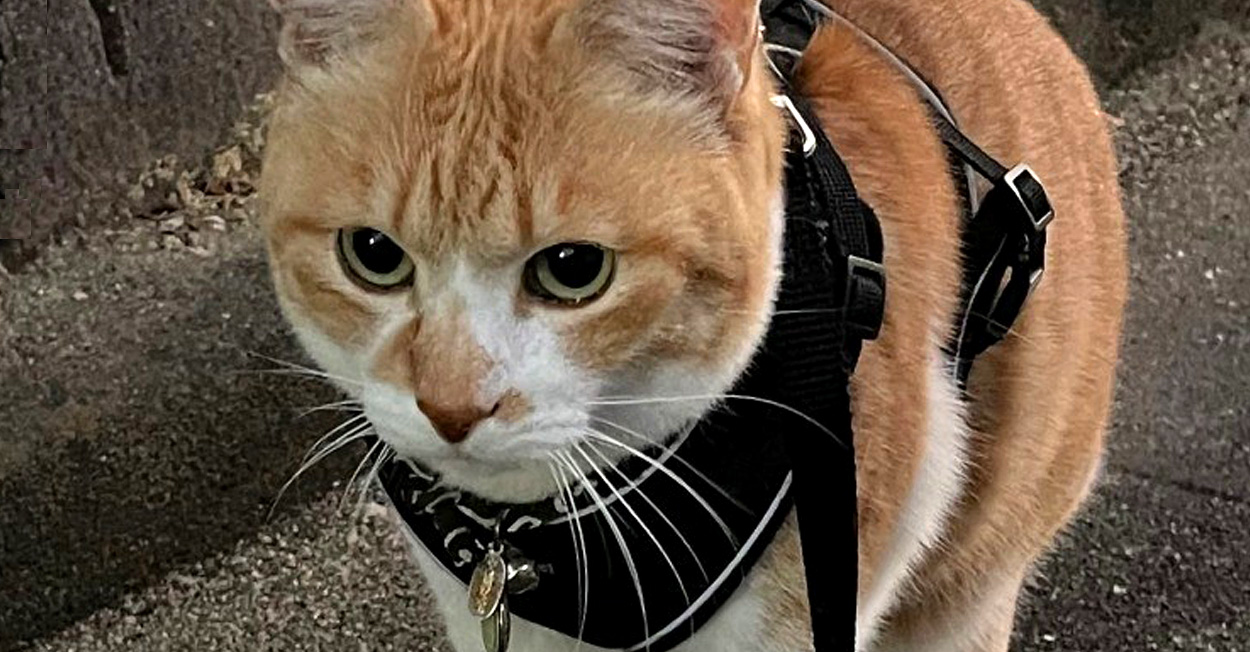 飼い主さんと一緒に散歩に出かけるのが日課の猫の『チャチャ君」。この日もハーネスを装備して、いつものようにやる気満々で家の外に出ました!