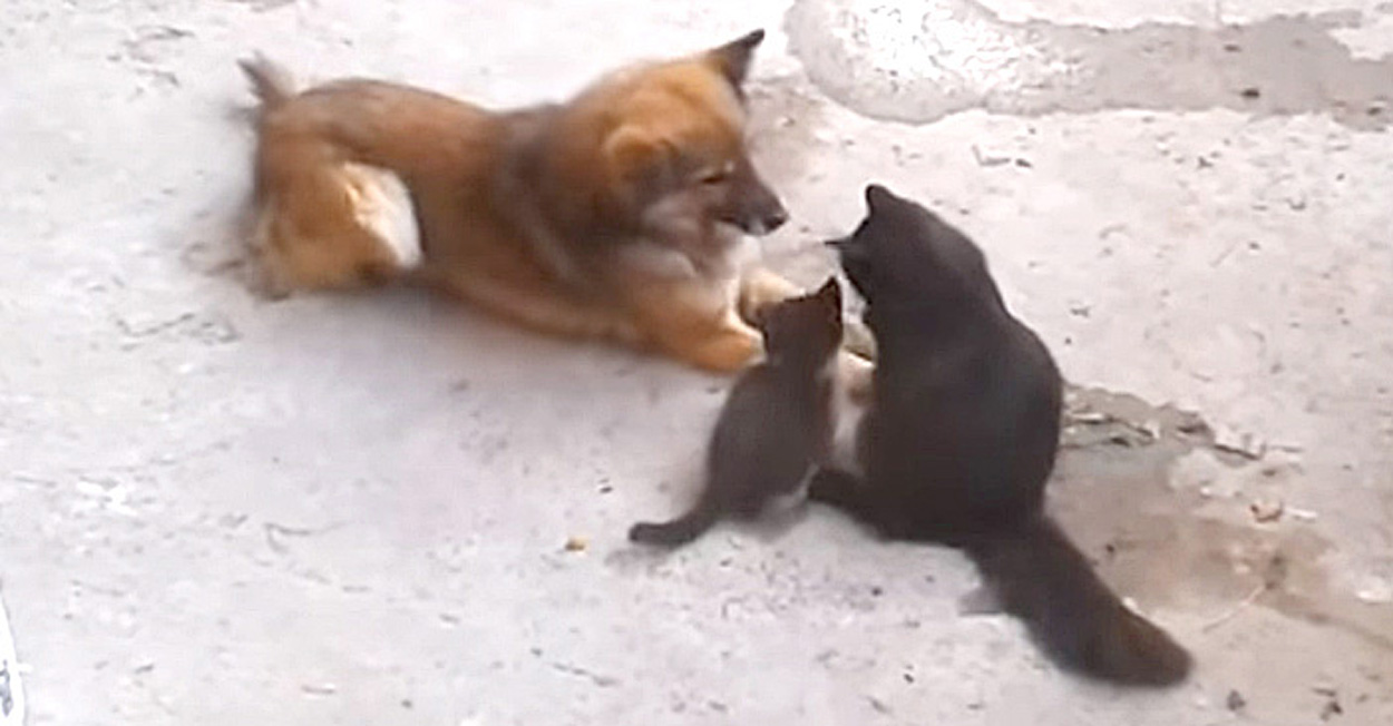 すると犬は子猫達に出会えたことがとっても嬉しかったようで、寝転がったりしながら、愛らしい仕草で子猫達をあやし始めました♪