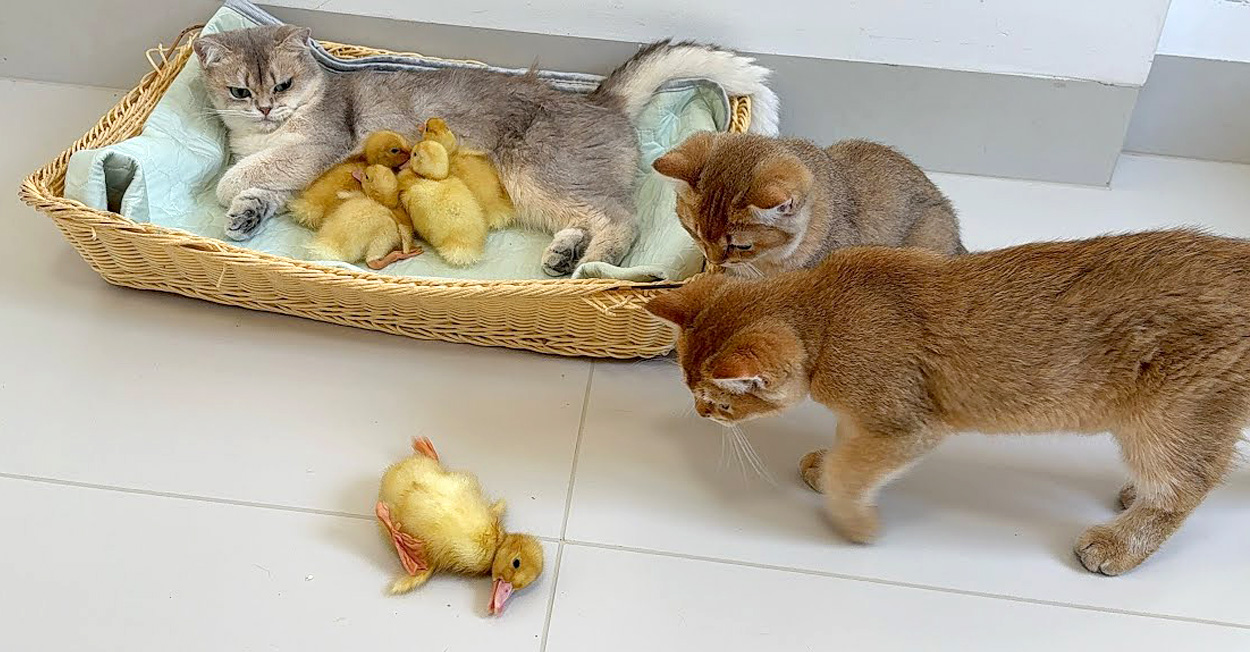 子猫達がアヒルのヒナを2度も救う! さらにヒナ達を幸せにするために、愛情いっぱいの行動に出た (*´ェ`*)♡