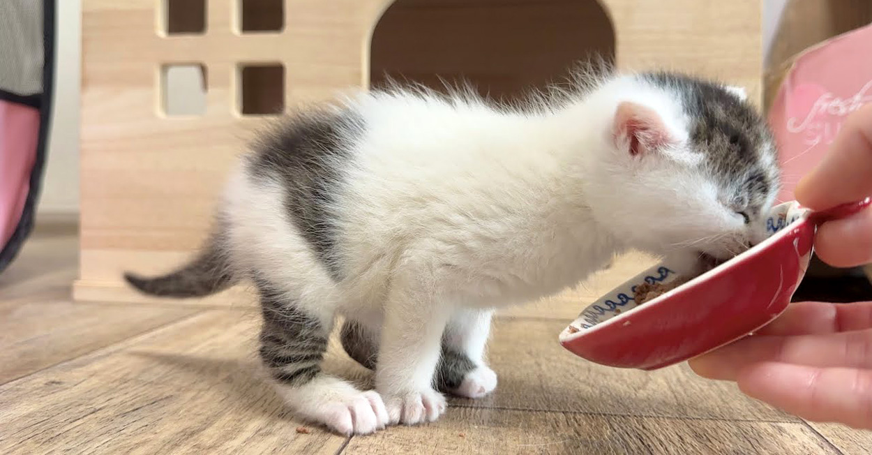 保護されて養育主さんの家で暮らし始めた子猫の『坊ちゃん』。この日も元気に目覚めた坊ちゃんのために、養育主さんが離乳食を用意しました。
