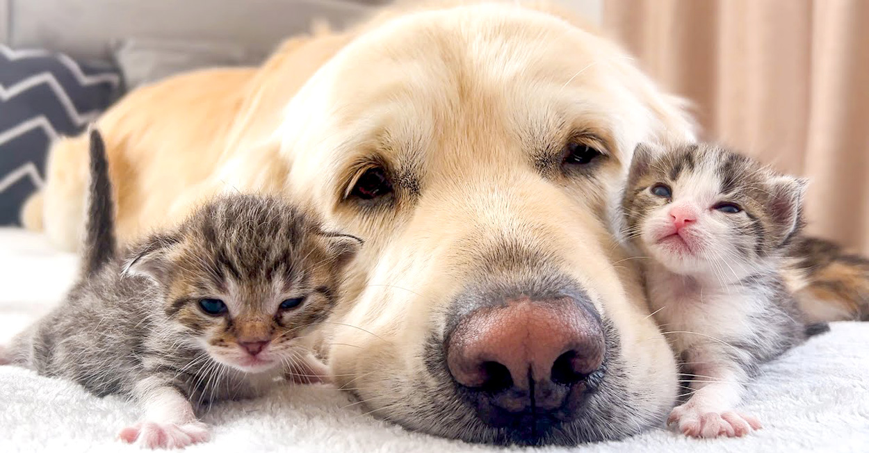 ゴールデンレトリバーの『ベイリー』が暮らしている家で生まれた子猫達。母猫にしっかりと世話をされながらすくすくと成長を続け、ついに目が開き始めました♪