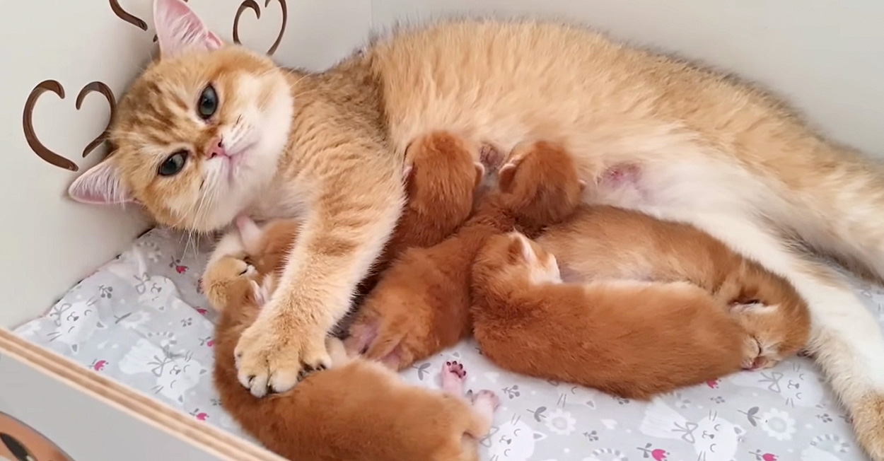 育ち盛りの幼い子猫達にミルクを飲ませていた猫のお母さん。どうやらとっても幸せな気持ちに包まれたようで、両手を交互に伸ばしながら、エアーフミフミを始めました♪