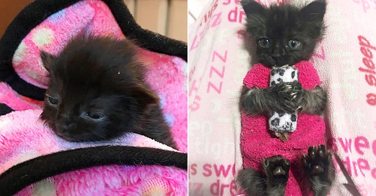 母猫と一緒に救い出された小さな子猫。靴下で作ったセーターのおかげで体が回復し、ついに元気な姿を取り戻す!