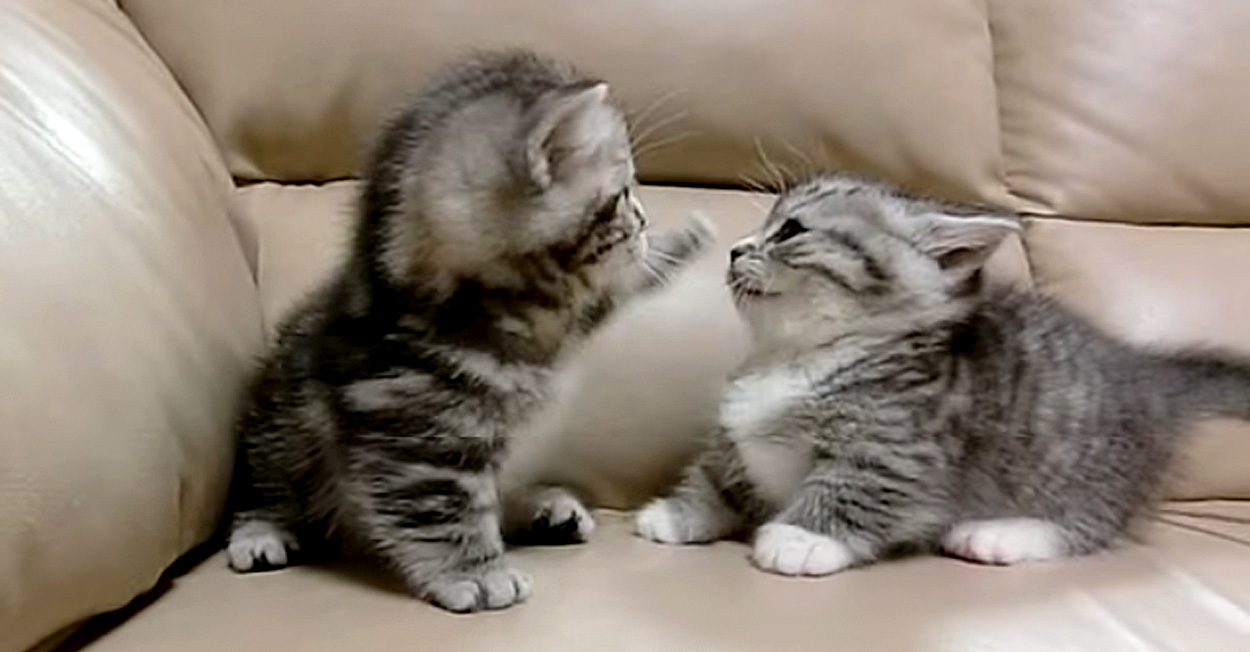 ある日、ソファーの上で一緒に過ごしていたマンチカン子猫の兄弟がプチケンカを始めました。甘噛みしたり、体当たりしたりしながら、お互いに負けないように頑張る兄弟。