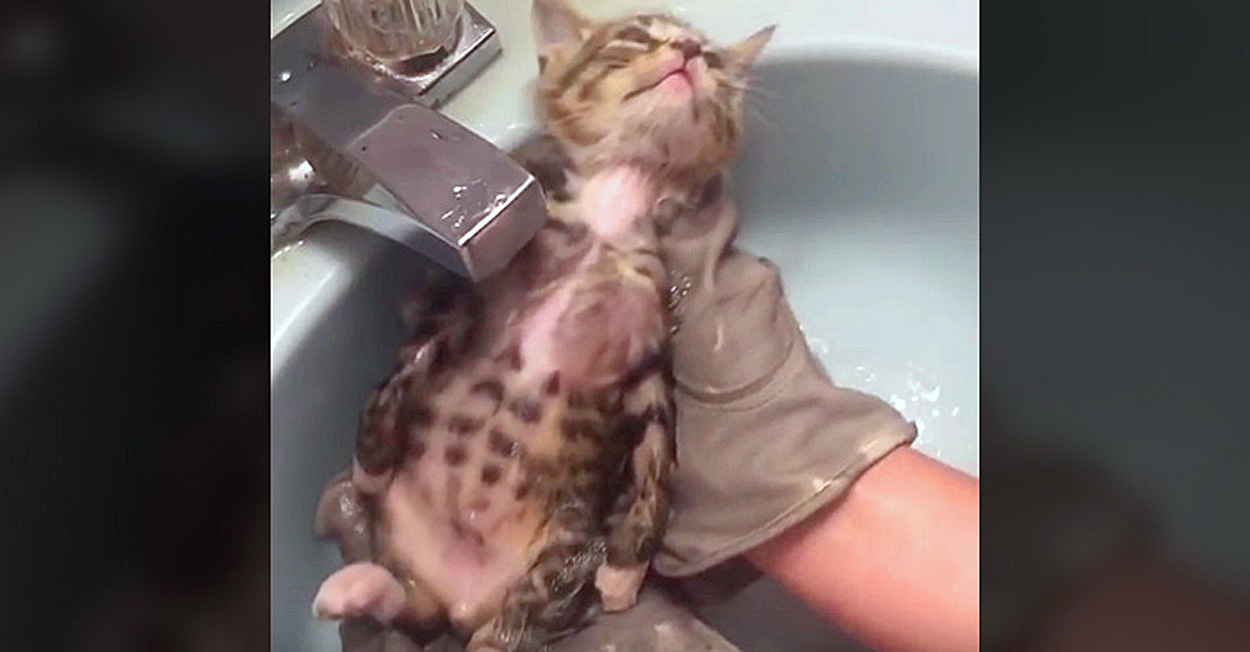 スタッフ達は保護した子猫に『ルパート』と名付けました。ルパートは全身がノミや汚れで覆われていたため、お風呂で全身を綺麗にすることになりました。