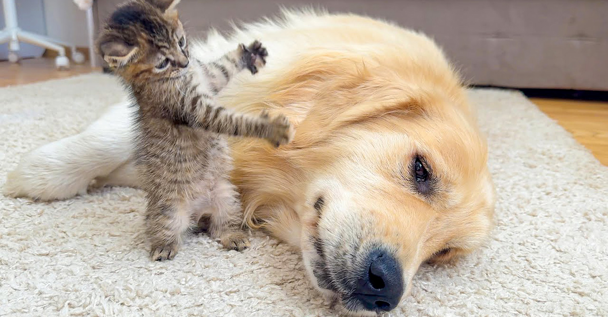 ある日、自分が家のボスだと思っている恐れ知らずの子猫が、巨大なゴールデンレトリバーに襲いかかりました!