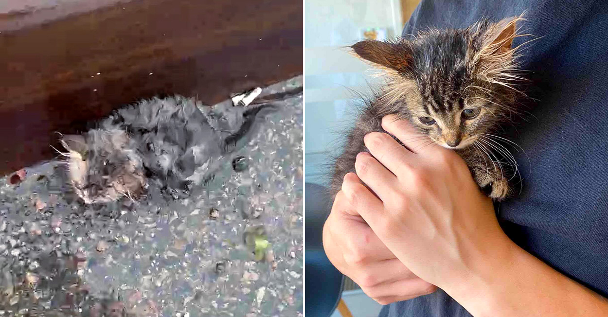 女性が濡れた路面から子猫を持ち上げようとすると、子猫が渾身の力を込めて「シャー!」と威嚇してきました。それが子猫にできる唯一の防衛手段でした。「子猫はいつ車にひかれたり、橋から落ちたりするか分かりませんでした。幸いにも一人の女性が子猫を助けるために行動してくれました。」