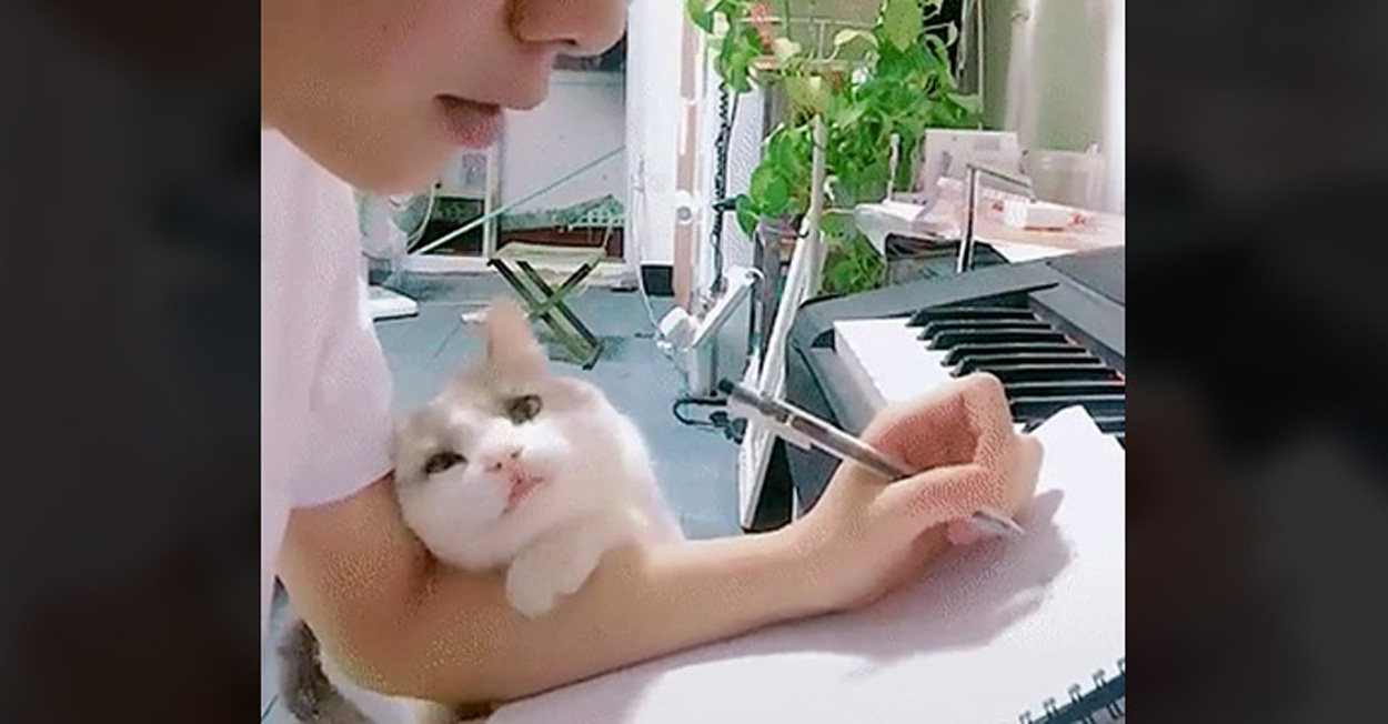 こちらの猫さんも作業に集中する飼い主さんにかまってもらいたかったようで、飼い主さんの腕に前足を掛けて、「ねぇ、まだ終わらないの?」と言っているかのように飼い主さんの顔を覗き込んできました。