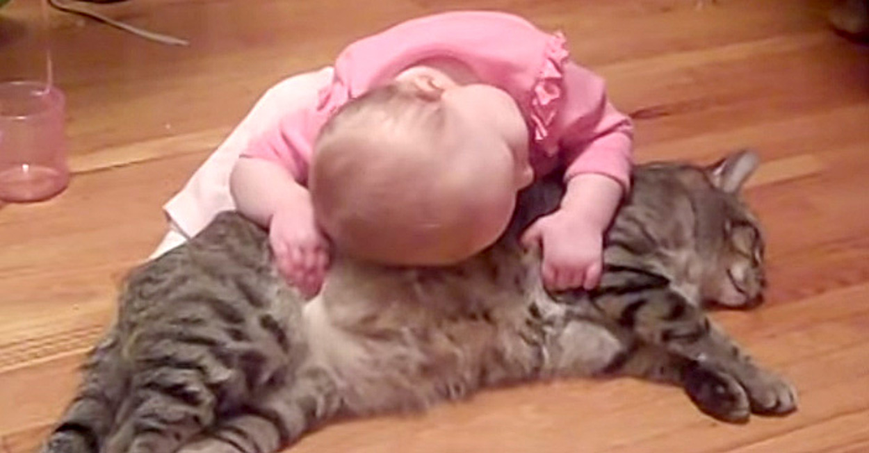 元気いっぱいの赤ちゃんは猫さんをギュッと抱きしめたり、乗っかったりとやりたい放題。さすがの猫さんも激し過ぎる『大好き攻撃』に怒るかと思いきや、全く怒る気配はないようです(*´ェ`*)