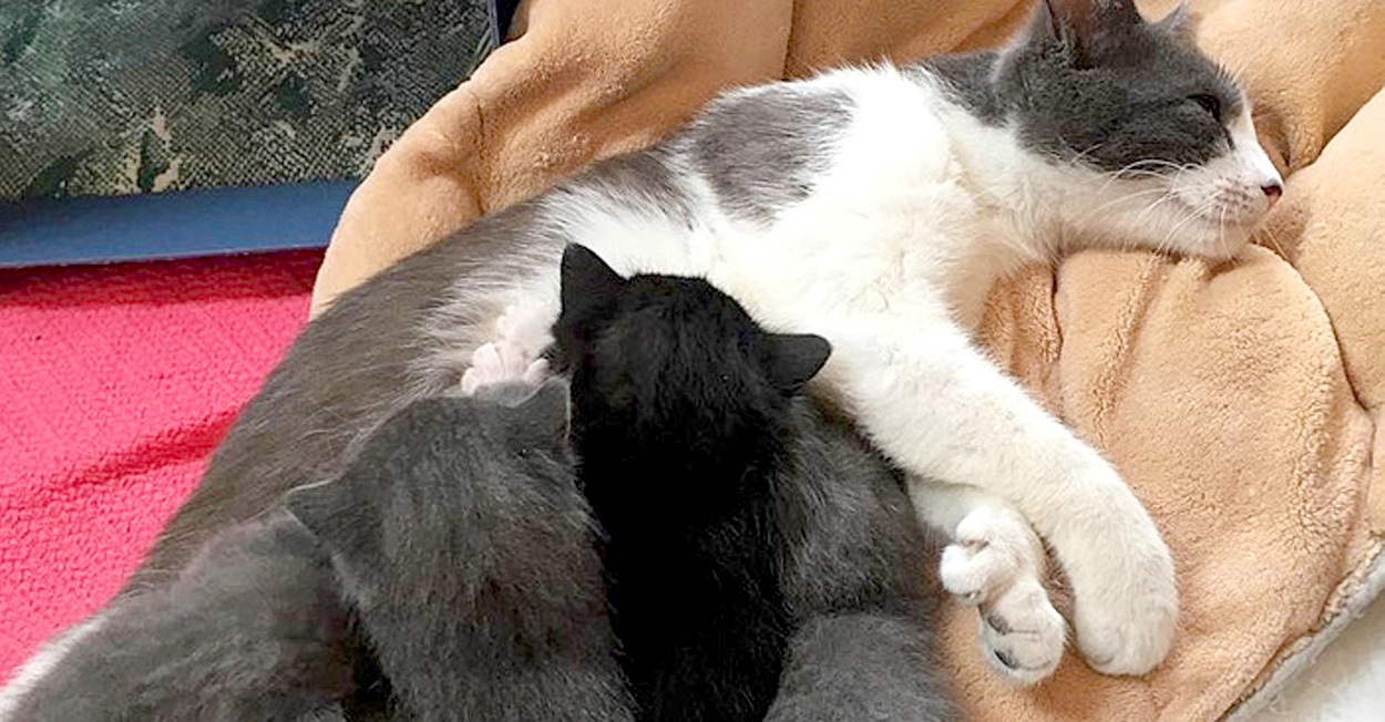 ブロッサムはご飯が食べられなかった期間も、決して子猫達の世話を止めることはありませんでした。