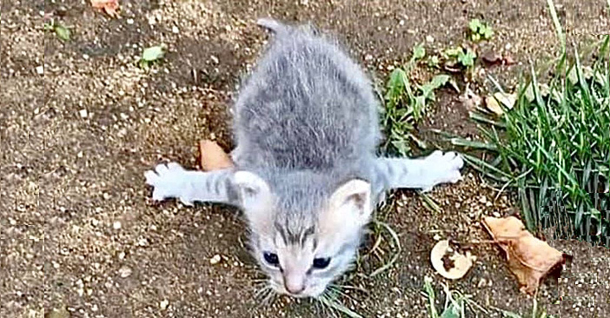ある日、前足が外側に開き切った状態の迷子の子猫が見つかりました。子猫はその足のため歩くことができませんでしたが、非常に強い意志を持っていて、必死に動き回ろうとしていました。