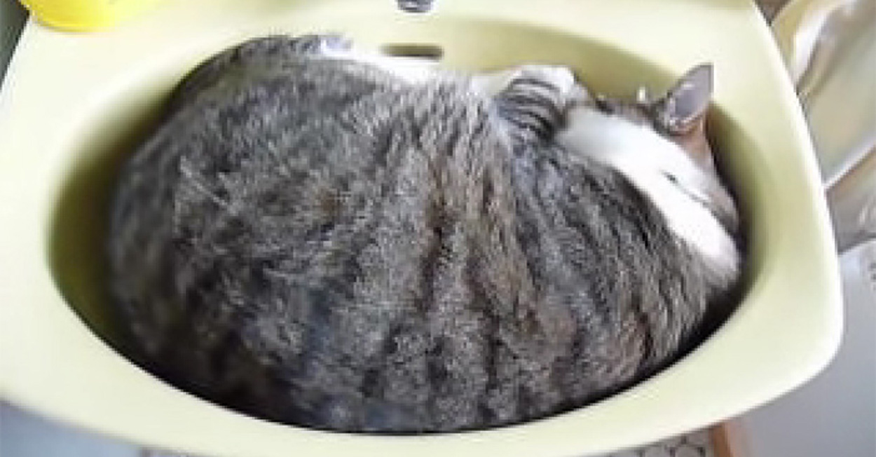洗面ボウルにピッタリとフィットしながら眠る猫さんの様子はこちら。