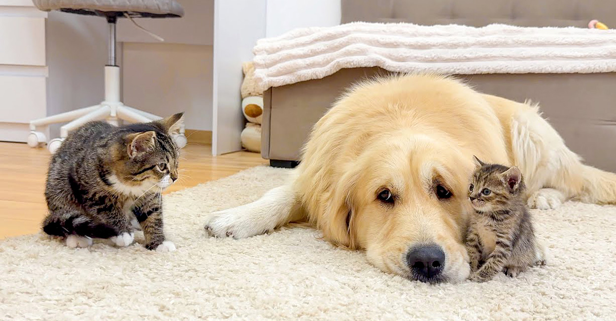 ある日、ゴールデンレトリバーの『バディー』が猫の親友の『エマ』に幼い子猫を紹介しました。するとエマは初めて見る子猫を警戒して、「シャー!」と威嚇し始めました。