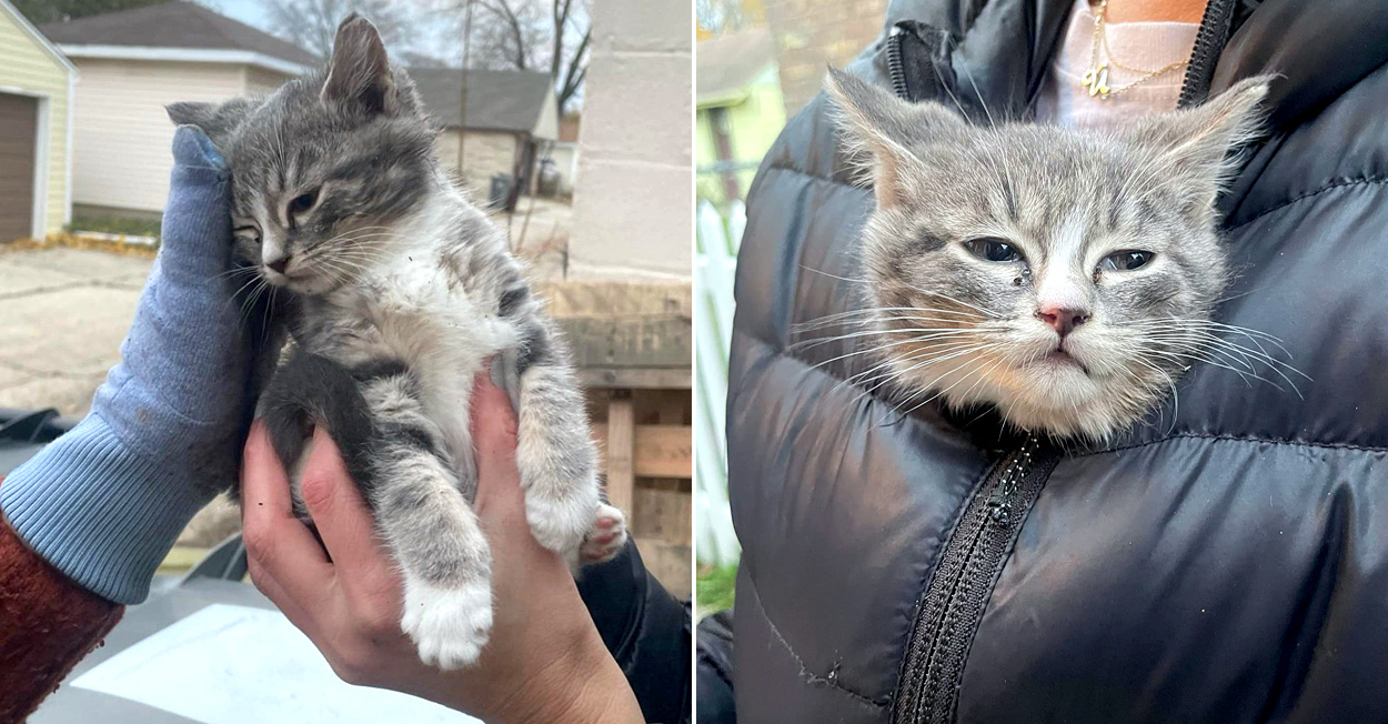 二人は子猫をジャケットで包み込んで、体を温めて落ち着かせました。子猫は二人のハグにすぐに溶け始めて、その瞳からは恐怖の色が消えていきました。二人は子猫のために養育主さんを見つけると、子猫が新しいスタートを切れるように養育主さんの家まで送り届けました。