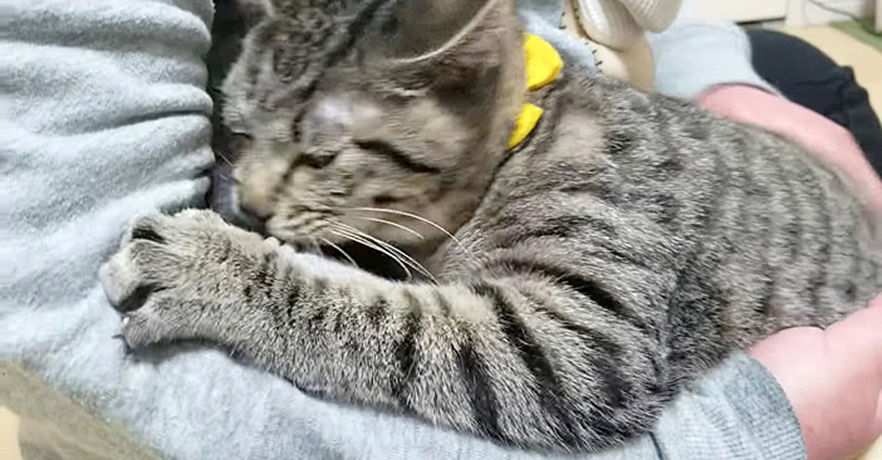 そして大好きな飼い主さんの腕の中に収まると、全力でチューチューし始めました♡