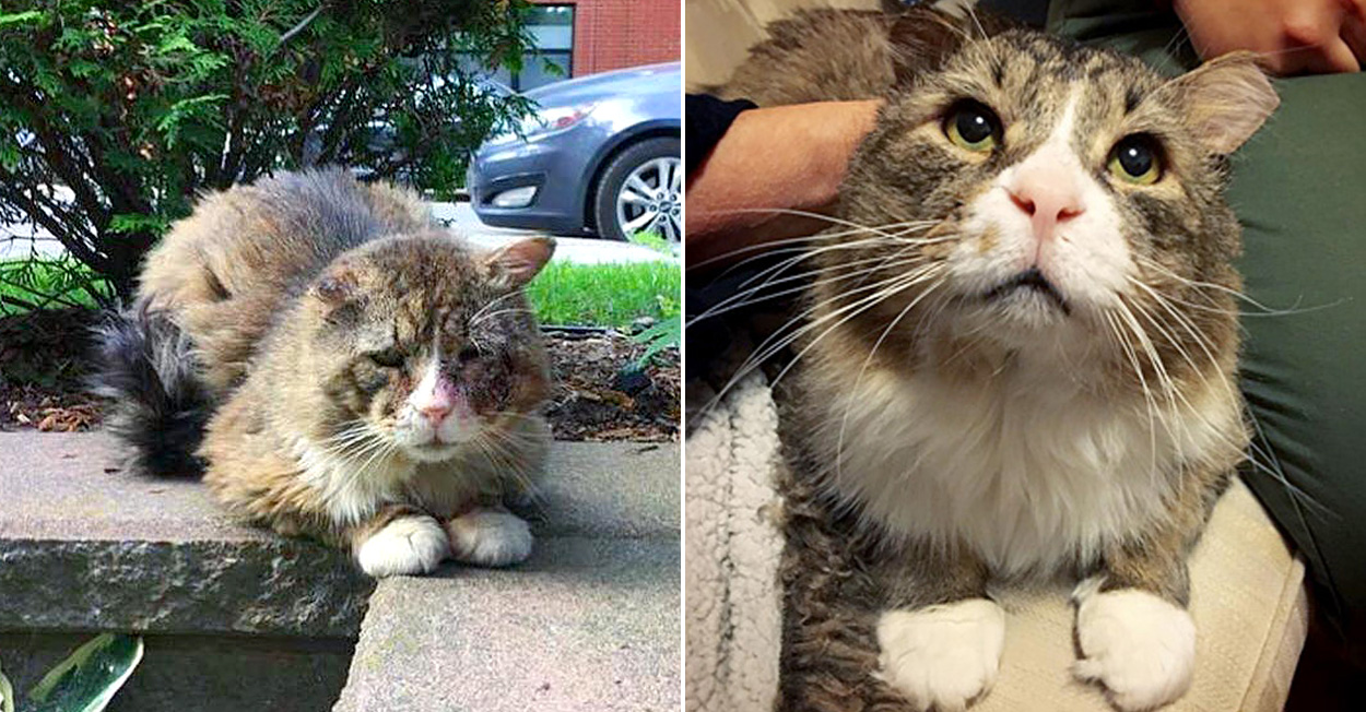ある日、カナダのモントリオールに住んでいるマリー・イブさんが、自宅の近くで助けを必要としている野良猫の姿を見つけました。猫は全身の毛がボロボロになっていて、痛みに表情を曇らせていました。猫の瞳はとても悲しそうで、マリーさんの心は強く揺さぶられました。