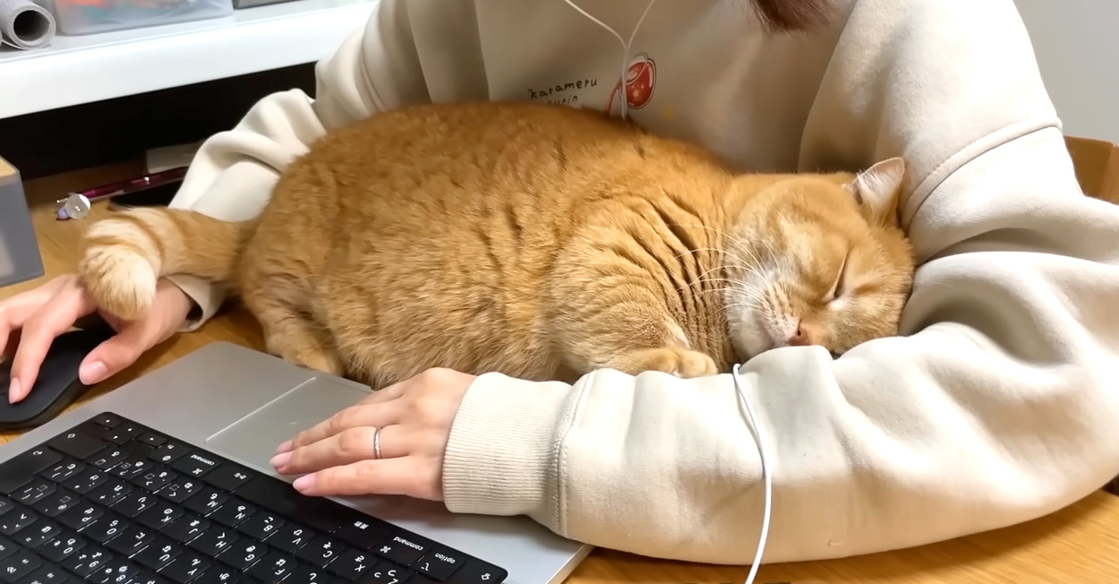 徹夜で仕事していたら腕の中に入ってきた猫さん。仕事が終わるのを待ちながら寝落ちしちゃう様子が可愛すぎた ( *´艸`)♡