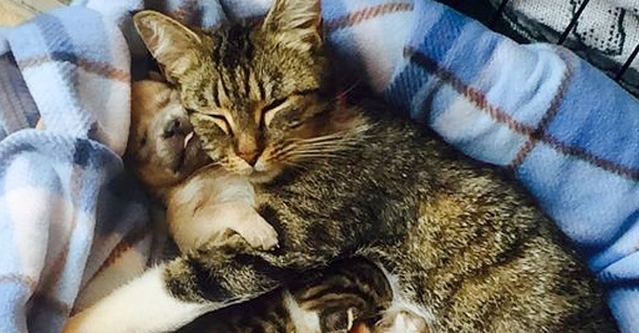 同じ頃、保護施設には子育て中の母猫の『グウェン』が保護されていました。そこでスタッフ達がグウェンにボビーを会わせてみると、グウェンはすぐにボビーのことを温かく迎え入れて、優しく毛づくろいを始めました。どうやらグウェンにはボビーの寂しい気持ちが分かっているようでした。