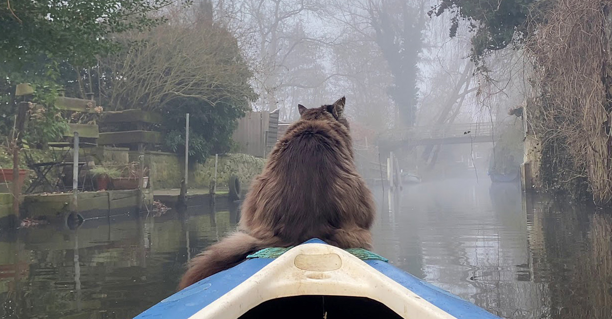 飼い主さんと一緒にカヤックに乗って、周りの景色を眺めるのが大好きなメインクーンの『ルイくん』。この日は霧がかかる中、朝のカヤックを楽しんでいました。