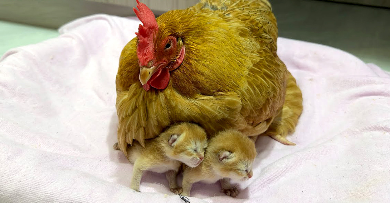 愛情いっぱいのニワトリと母猫の姿に思わずホッコリしますね♡
