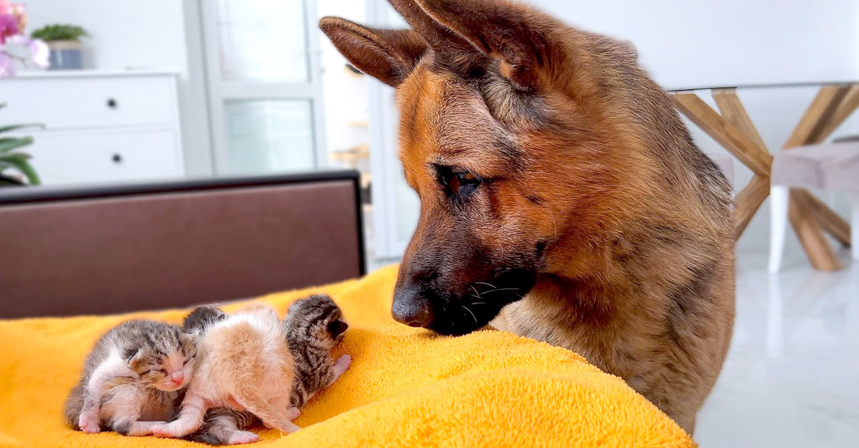 ある日、ジャーマンシェパードの『ロッキー』が幼い子猫達が過ごしている部屋に入ってきました。すると愛らしい子猫達に一瞬で心を奪われたようで、ソワソワしながら子猫達のことを観察したり、匂いを嗅いだりし始めました♪