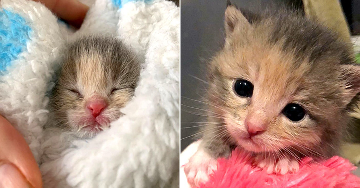 ある日、建設現場のそばを歩いていた人が子猫の鳴き声に気づき、母親のいない生まれたばかりの子猫の姿を発見しました。子猫は生後僅か2〜3日ほどで、空腹に耐えることができなくて鳴き続けていました。