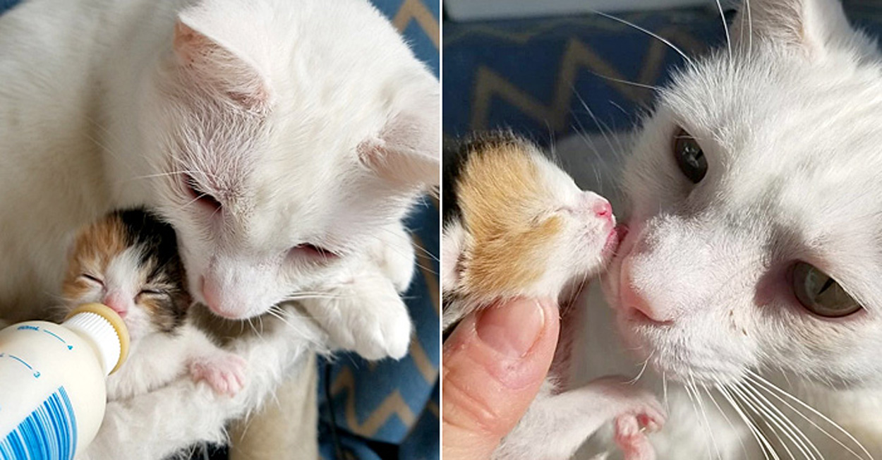 子猫は体重が71gしかありませんでしたが、強い意志を持っていて、生きることを決して諦めていませんでした。また子猫はいつも愛されたいと思っていて、誰かに抱きしめてもらうことを強く望んでいました。エレンさんはそんな子猫にふさわしい猫がいることを知っていました。