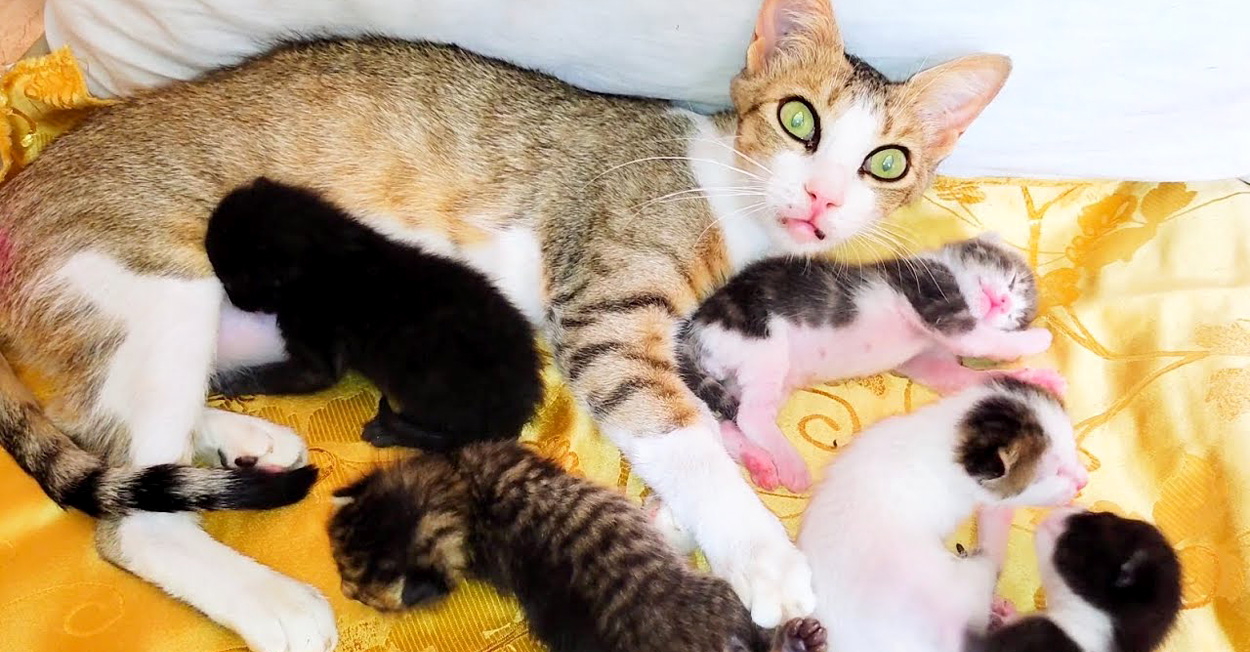 すると母猫はまるで感謝の気持ちを伝えるかのように保護主さんのことをジッと見つめて、幸せそうに子猫達の世話を再開しました♡