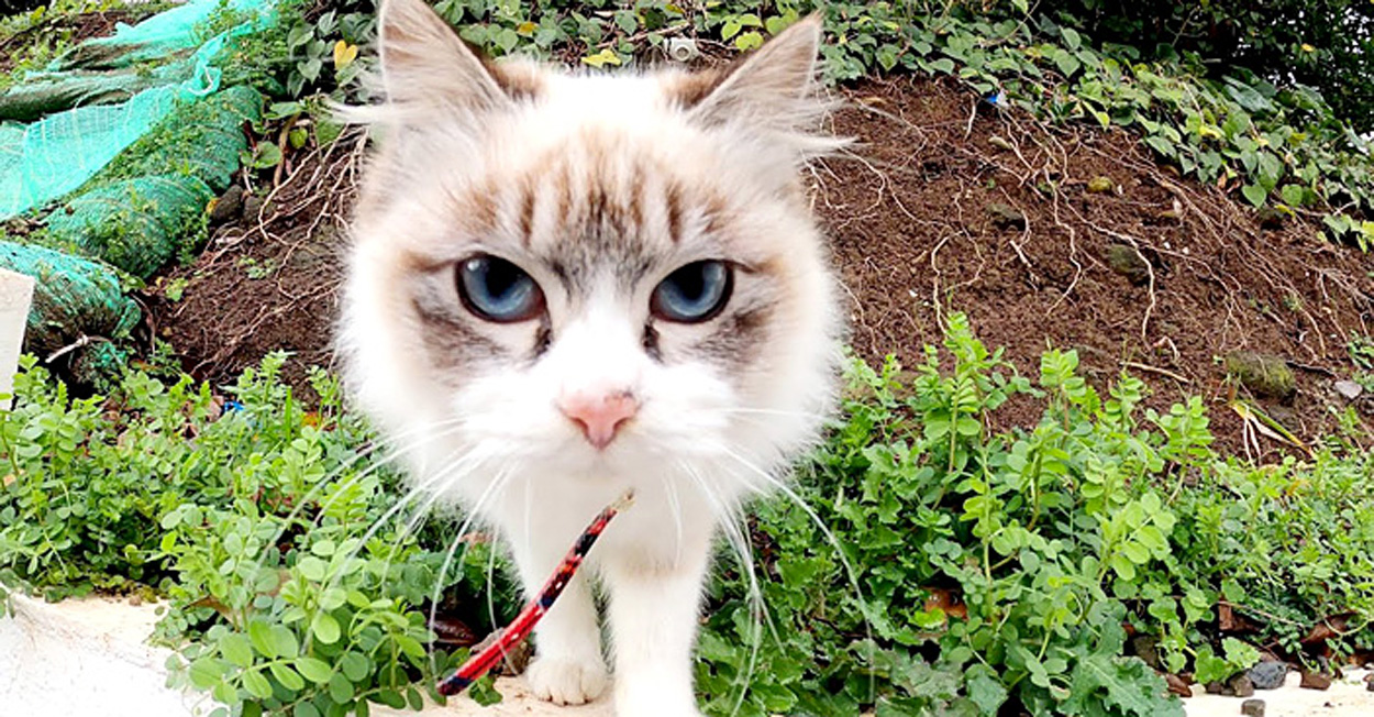 ある日、男性が猫の集会に参加していると、とっても美人な猫さんが突然姿を現しました。どうやら飼い猫のようで、自由にお散歩を楽しんでいたようです。