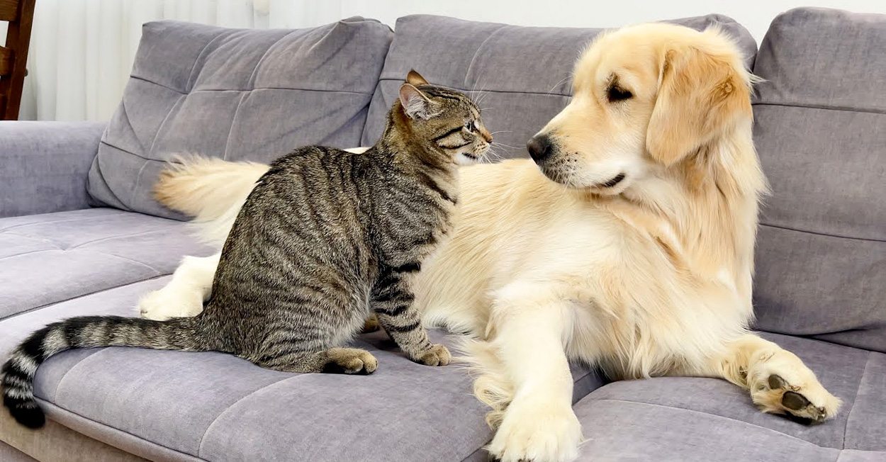 同じ屋根の下で暮らし始めたゴールデンレトリバーと猫。どうやらレトリバーはどうしても猫とお友達になりたかったようで、猫に猛アプローチし始めました!