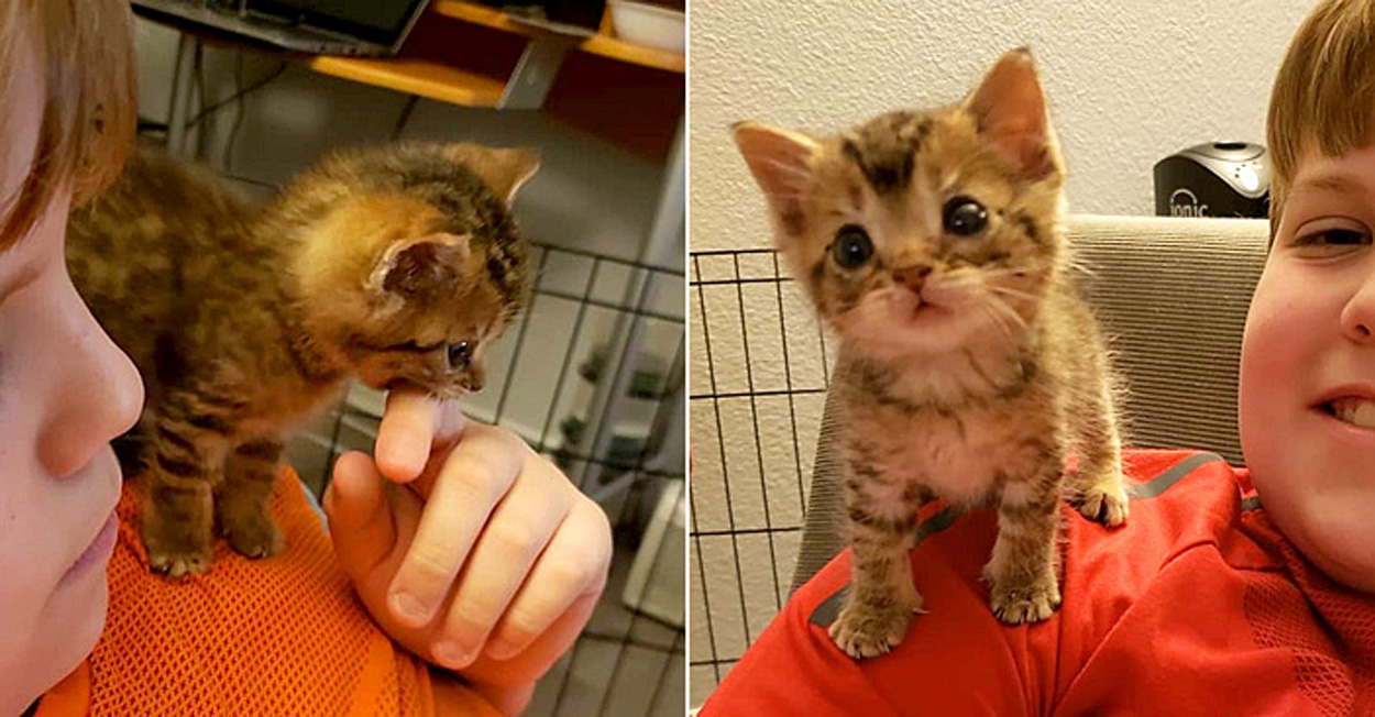 その後、アリッサさんから子猫の話を聞いた養育ボランティアのエリンさんと11歳の息子のクリス君が、子猫を自宅で養育することに決めました。そして二人が子猫を引き取りに行くと、子猫がどれほど小さいかが分かりました。