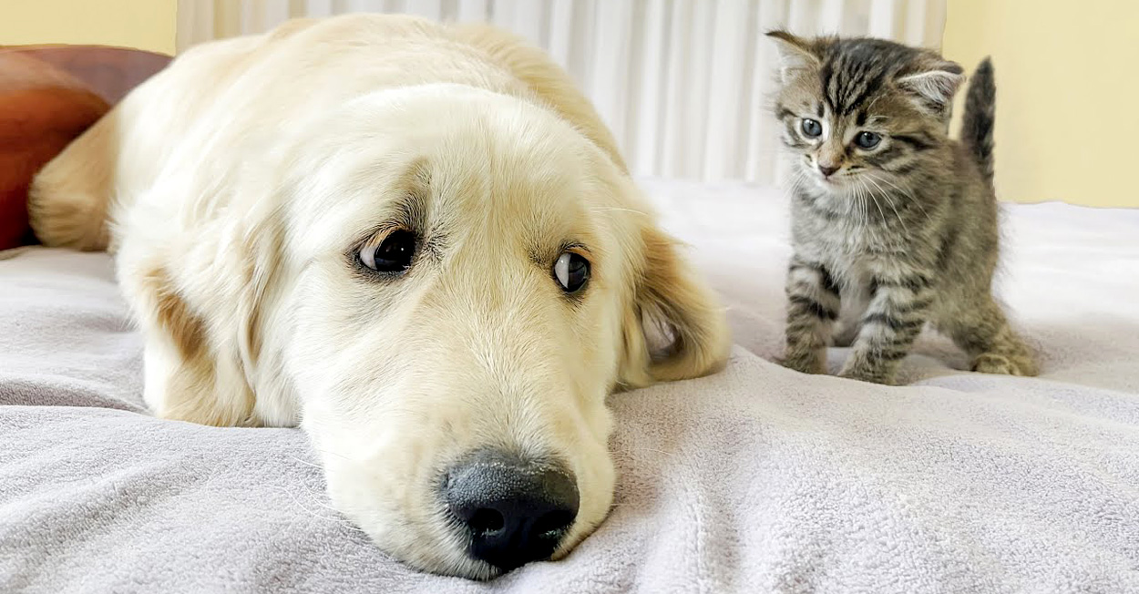 どうしても子猫とお友達になりたいレトリバーの様子はこちら。