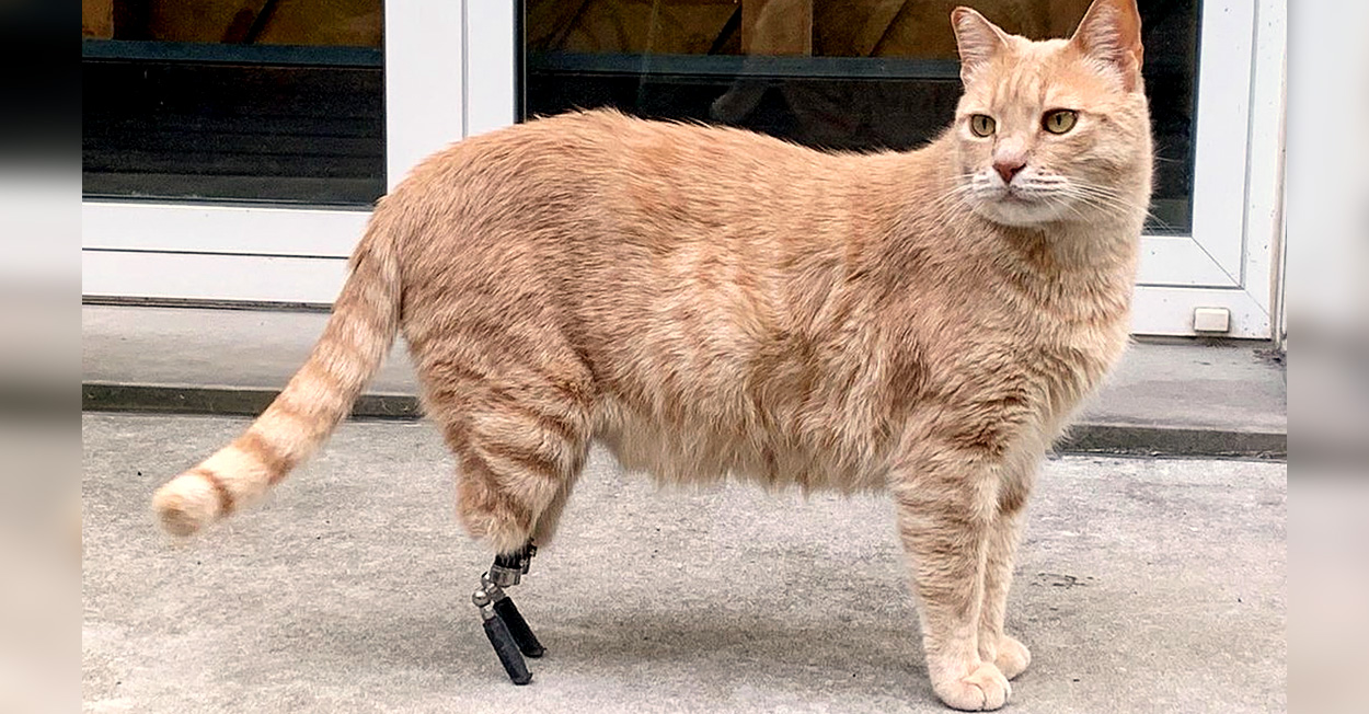 義足のおかげで再び自由に歩けるようになった猫。助けてくれた獣医さんや家族の優しさで、幸せに満ちた毎日を送る!