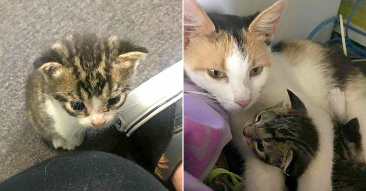 「彼女は小さな子猫を連れてオフィスに現れました。そして彼女は子猫を私に預けて、別の場所へと歩いて行きました。私が彼女の後を追うと、そこにはもう1匹小さな子猫がいました。」