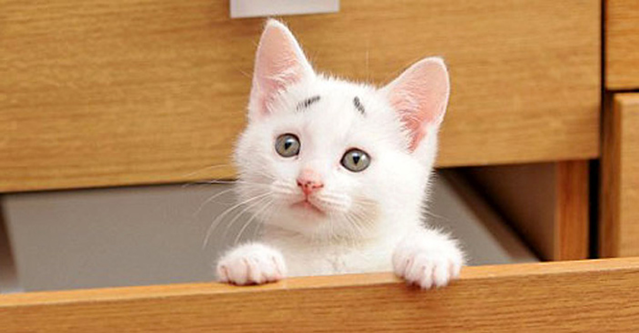 子猫の『ゲイリー』の額には、生まれた時から眉毛のような可愛い模様がありました。そのためゲイリーはいつも心配そうな顔をしているように見えるのです。