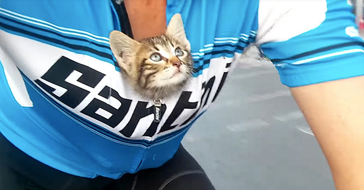 ネバースさんはお腹を空かせた子猫に一刻も早く食べ物と水を与えなければと強く感じ、慎重に子猫を自分のシャツに入れてペダルを漕ぎ始めました。
