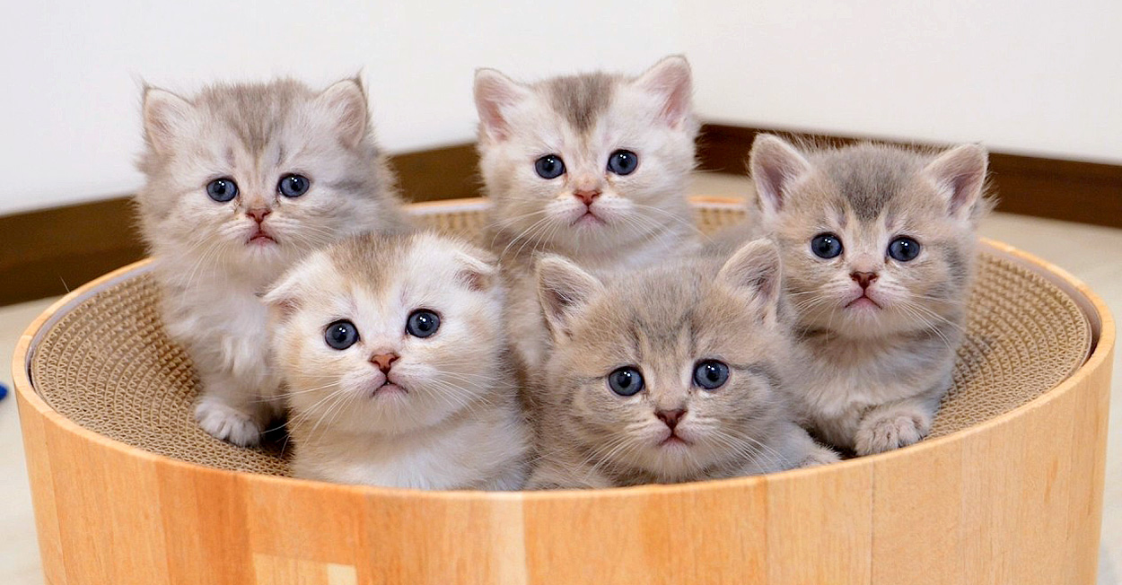 爪研ぎベッドで寄り添いながらみんなで一緒に寝ていた子猫の兄弟。そんな子猫達が目を覚ますと、まだ寝ぼけている子猫達に向かって飼い主さんが「あっちむいてホイ!」をやってみました。