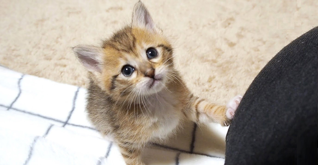 よちよち歩きの子猫が「遊ぼうよ〜」と誘いにきた♪ あどけない表情で甘えてくる姿に思わず胸がキュンとする ( *´艸`)♡